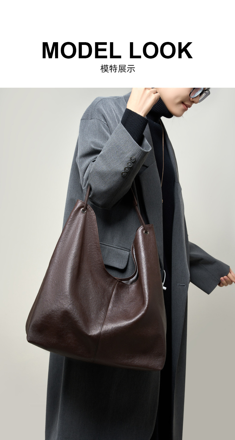 2024 New Vegetable Tanned Cowhide Popular Large Capacity Texturous Tote Bag All-match Shoulder Class Underarm Commuter Bag