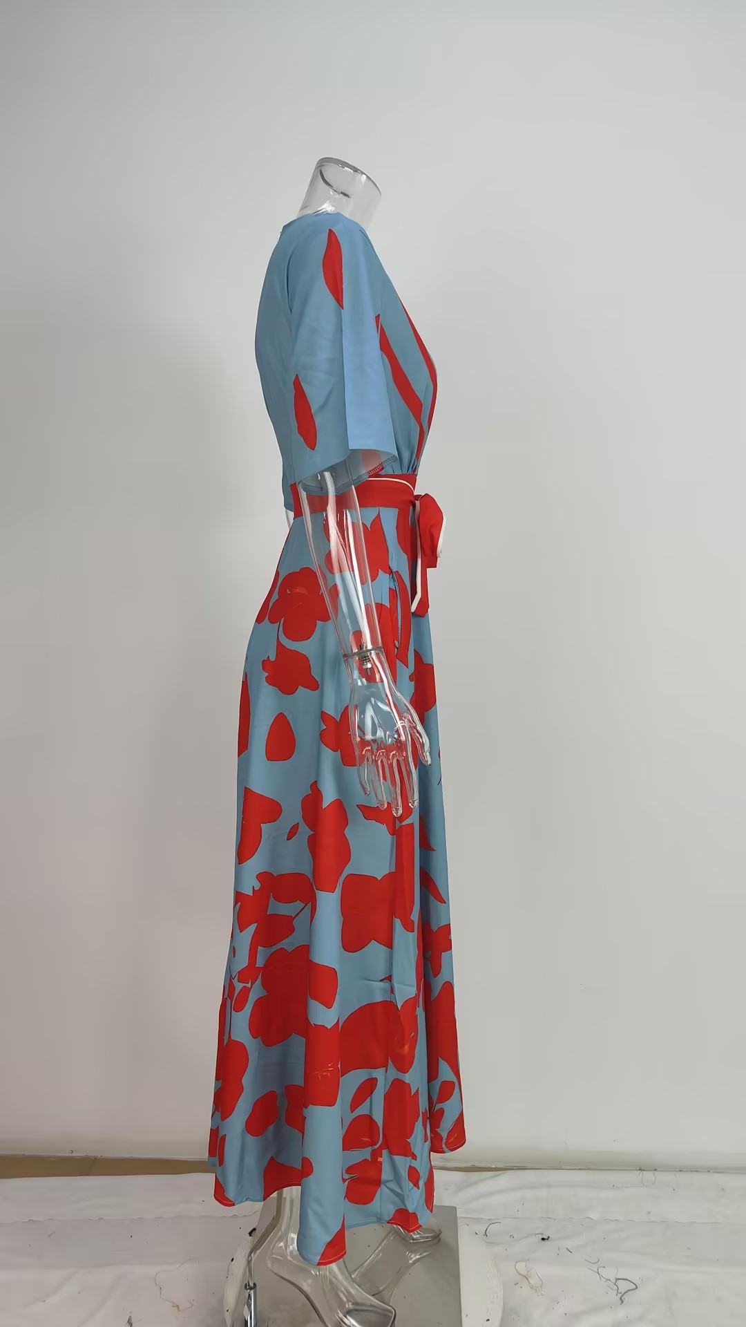 Style Long Printed Strap Dress Fashionable Long Skirt